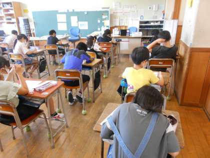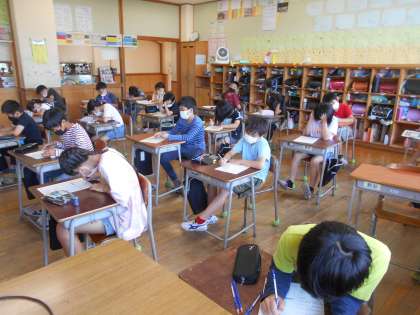 1、2枚目:スタートタイムの様子です。今日は火曜日なので、計算練習でした。来週あたりに、子供たちが楽しみにしている(?)学期のまとめテストに向けてがんばっています。