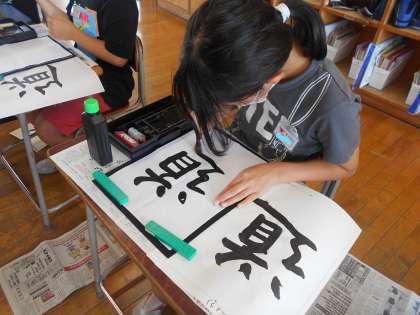 しんにょうに苦戦しながらも、手本を見ながら丁寧に書いていました。