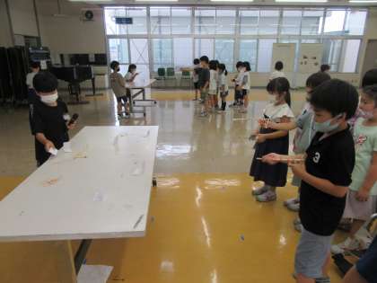「1組さんが楽しんでくれて嬉しかった」「うまくいったところもあるけれど、うまくいかなかったところもあって残念だった」「次は、もっと分かりやすいルールにしたい」など、子供たちは次の活動へつながる振り返りをしていました。