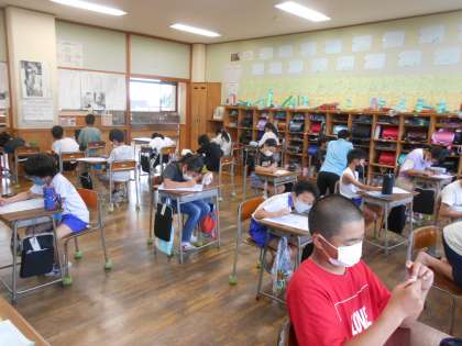 算数のまとめテストがありました。範囲は4月から6月末の部分です。気になる結果は・・・お子さんに聞いてみてください。近日中に答案を持ち帰りますので、ご家庭で励ましをお願いします。