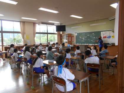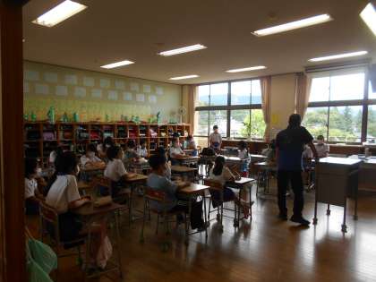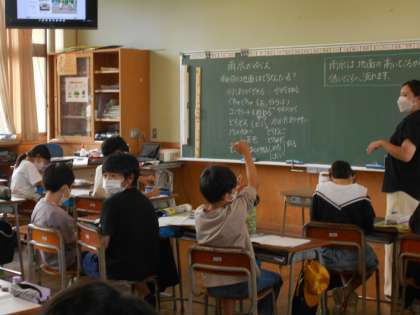 3枚目:理科「雨水のゆくえ」で、どんなところに水たまりができるのか、生活経験をもとに話し合っていました。