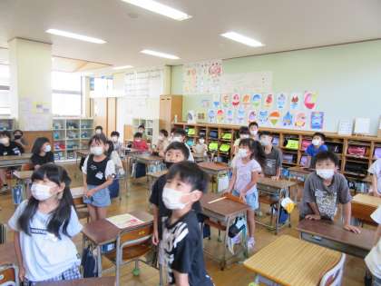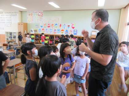 2年生になって初めて外国語の活動をしました。英語で楽しく歌ったり、ゲームをしたりして英語に親しみました。