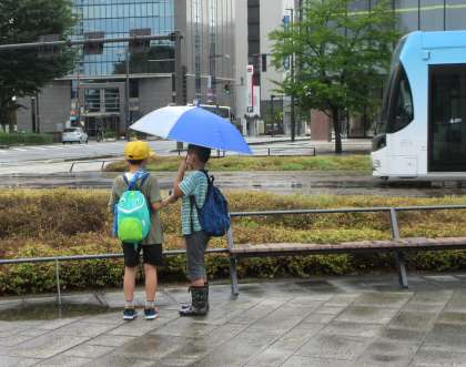 1年生から6年生がいるすみれ・ひまわり級では、日頃から上学年の子が、下学年の子のことをよく手伝ってくれます。校外学習でも、エスカレーターで手をつないだり、さりげなく列の中に入れたりと優しい姿が見られました。最後の写真は、下学年同士ですが、仲良く一緒に傘に入っています。きっとこの子たちも優しい上学年になってくれますね。