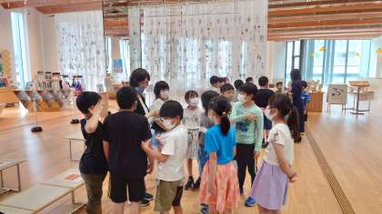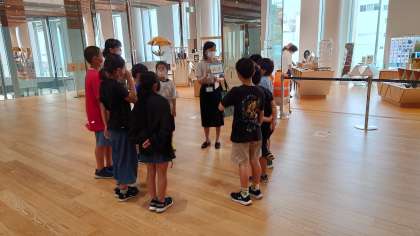 館内見学の注意事項を聞いています。小グループに分かれて見学開始です。