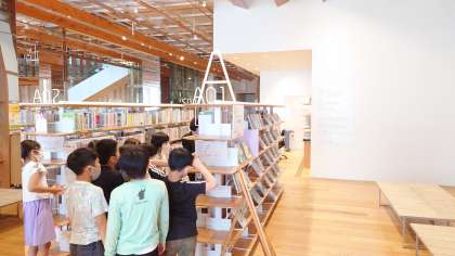 図書館を案内してもらったり、美術品の説明を受けたりしています。