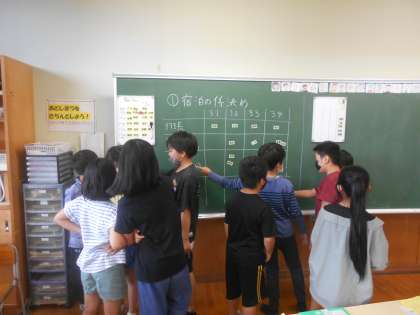 9月の2週目に行われる宿泊学習の班が発表されました。その後、自分たちでどの仕事(係)を担当するか話し合って決めていました。宿泊学習でもどんな「成長」が見られるか楽しみです。
