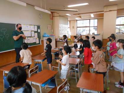 子供たちは、のりのりでアルファベットの歌を歌ったり、グレック先生と簡単な英語のゲームをしたりして楽しんでいました。