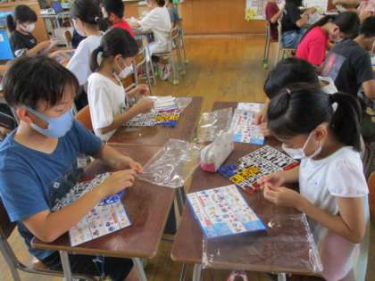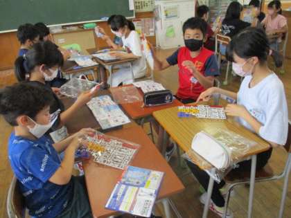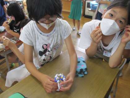 総合の学習の時間に、プログラミング学習を行いました。おもちゃのプラモデルで有名なバンダイの会社から届いたガンダムのプラモデルを使っての学習に、子供たちは大喜びでした。プラモデルを作成した後、バンダイの会社のプラモデルの製造の様子を映像で見ましたが、男の子たちの心を惹きつける魅力的な教材でした。