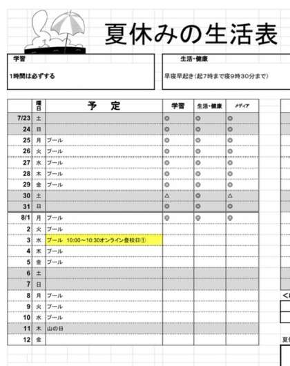 6年生は、夏休みの生活表をオンライン上で記入しています。