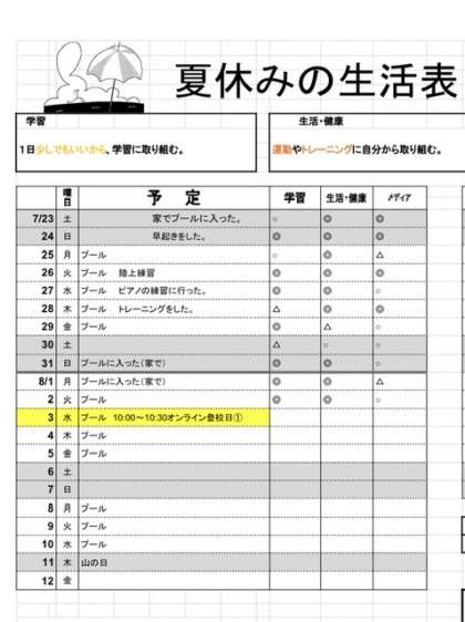 子供たちの生活表を見ると、自分が立てた目標に向けて、夏休みも一生懸命に取り組む様子が伝わってきます。まさに、自立の夏休みですね。素晴らしい!