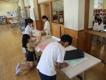 ワークスペースへ夏休み中に取り組んだ自由研究を持ち寄り、作品展の準備を進めています。夏休みの作品展は、30日(火)〜9月2日(金)です。全校で見合う機会を設けます。