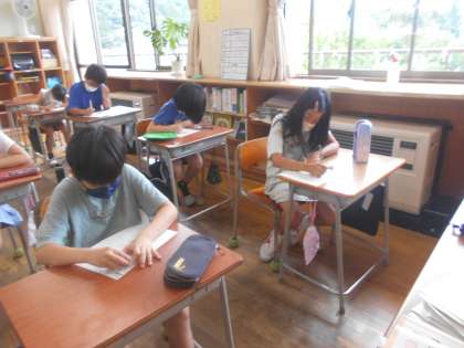 約10分、教室には、私語もなく、鉛筆の走る音だけが聞こえます。子供たちの集中力に驚きました。この小さな積み重ねが大きな力となることを信じています。