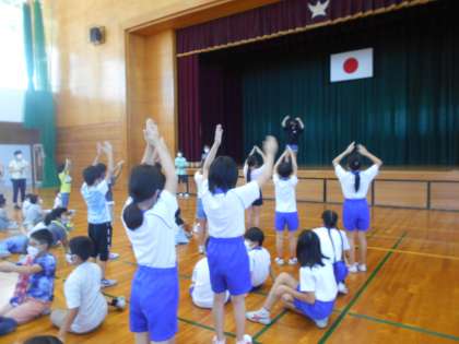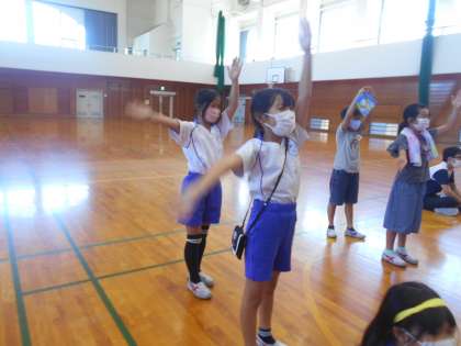 大休憩に黄団の集会がありました。「3時のおやつ」というゲームで、楽しく遊びました。笑い声が体育館に響き渡り、和やかな雰囲気になりました。