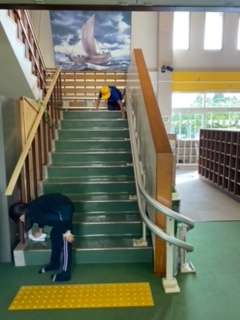掃除の時間です。きた時よりも美しくしようと、使ったところをきれいにしています。