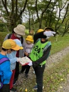 宿泊学習の最後の活動です。子供たちは地図を頼りにポイントを見つけています。困ったときこそ、みんなで知恵をしぼります。協力場面がたくさん見られます。