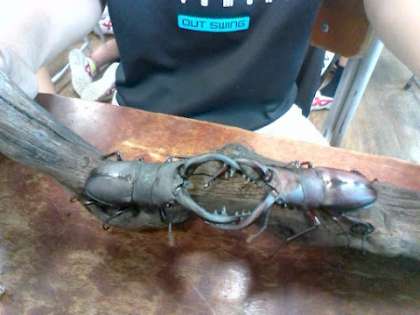 ノコギリクワガタの戦い、白熱する試合です。 6年子供記者 I K