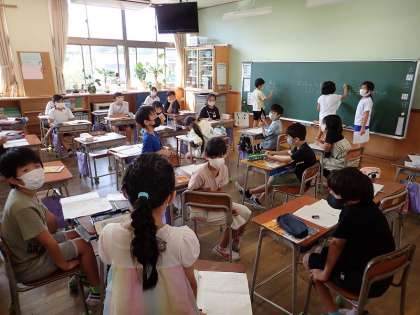 スーパーマーケットを訪れて気付いた、工夫されていることや便利だと感じることを発表しました。発表した自分の考えを黒板に書き、みんなで板書を作ることにしたところ、慣れないながらも一生懸命取り組む姿が見られました。