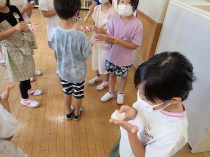 自分の手のよごれを、湿らせた脱脂綿を使って見てみました。「あー手を洗っておけばよかった」という気持ち、いつも持っていてほしいと思います。