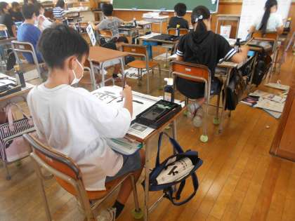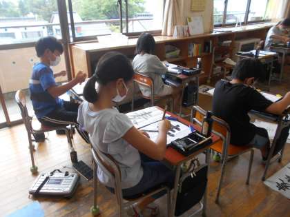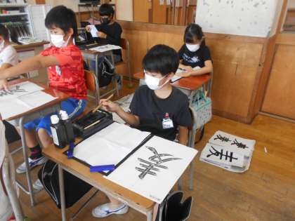 2限目は2つの学級で書写をしていました。「角の折れ」や「はらい」に気を付けて書いていました。