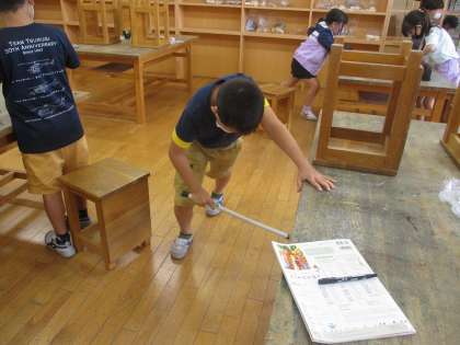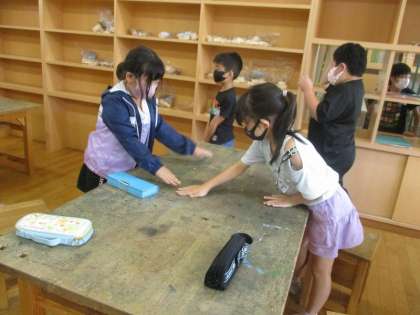 子供の中から、「先生!机の上に木の粉が落ちてるからきれいにしてから戻ります!」と声が上がりました。そこから手の空いている人で、使った図工室を掃除しました。自分で考え、よい行動をする姿が見られて、嬉しく思います。