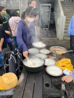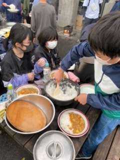 カレーライスが出来上がりました。苦労してつくったカレーライス。味は最高でしょう。