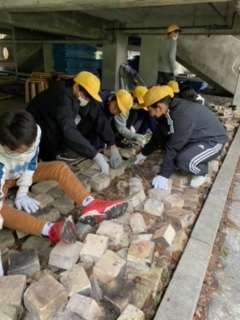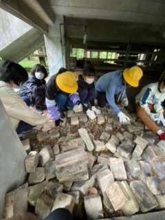 来た時よりも美しく、次に使う人のことを考えてと、自分の仕事が終わった人から、山積みされていたレンガをきれいに並べました。