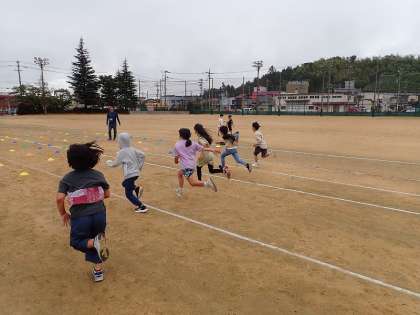 毎月1回の50m走のタイム計測に向けて、朝の時間や休憩時間を使って、一生懸命走っています。体を動かすことによって、健康で気持ちよく生活する意識も高まっているようです。
