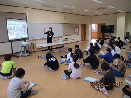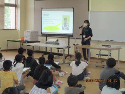 今日は、大沢野小学校の卒業生でもある教育実習生の先生をゲストテイーチャーに招き、大沢野小学校の思い出について話を聞きました。10年前の学校のことを卒業生の方に直接聞くことができるのはとても貴重で、その学校の校舎の様子や縦割り活動、学校行事や学級で流行ったことなどを写真などの資料とともに詳しく話して頂き、子供たちも興味深く聞き入っていました。自分たちの時代と違う面や、共通する面を見付けることができ、これからさらに小学校の歴史を探っていきます。