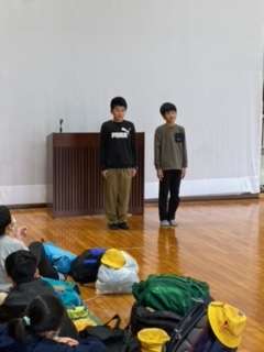 代表児童から野外炊飯で自分の役割を果たそうと努めたこと、ポイント探しでは仲間と励まし合いながら最後まで頑張ったことなど、宿泊学習で学んだことが話されました。学びの多い宿泊学習になりました。