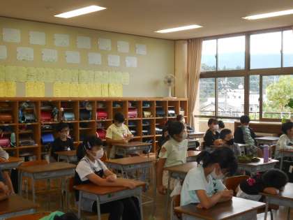 3枚目:先週の3組に引き続き、今日は2組の先生が1組で道徳をしました。「心を一つにするとは?」という学習課題で話し合っていました。授業の中でどんなことを考えたのか、お子さんに聞いてみてください。