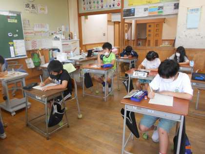 スタートタイムの様子です。今日は100ますのかけ算練習の日でした。かけ算は上学年の算数の基礎になります。速く、正確にできるスキルを高め、日々の学習にいかせたらよいですね。