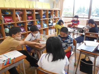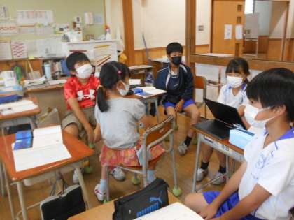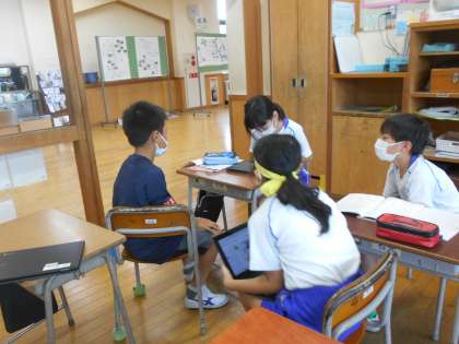 国語科「ごんぎつね」のグループトークの様子です。前に「ごんぎつね」は大人でもいろいろな読み方ができる名作であることを紹介していましたが、今日も子供たちからは登場人物の気持ちに迫ろうと、様々な意見が飛び出しました。音読が宿題になっている場合もありますので、家でのお子さんの様子もぜひご覧ください。