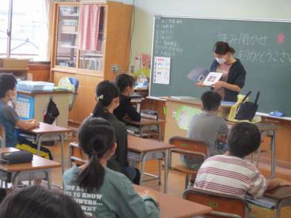 今日は、朝の読み聞かせの日です。読み聞かせボランティアの方の読み語りに、真剣に耳を傾けている素敵な時間でした。
