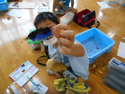 どんぐりやくりを拾ってきて色をつけてかざりコーナーをつくったり、秋の昆虫を飾って昆虫コーナーをつくったりしています。
