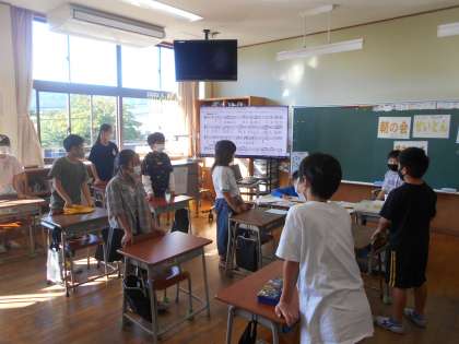 朝の会の前の様子です。先週から「朝の歌」として、各学級で合唱しています。