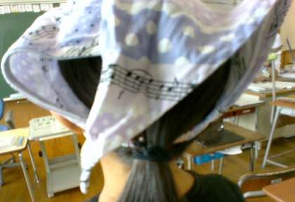 三角巾をつけて、掃除がすぐにできるように三角巾をつけましょう。