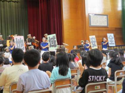 講演会では、川除選手が努力する大切さを教えてくださいました。警察音楽隊の迫力ある演奏の中には校歌のサプライズ演奏もあり、体も心も元気になる素敵な時間でした。
