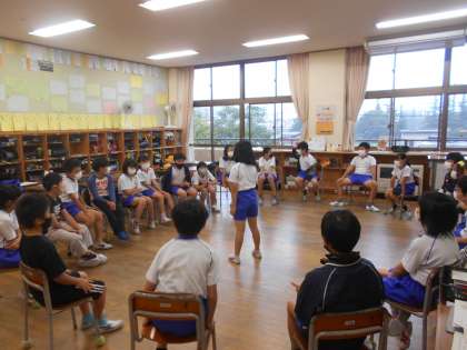 今日のスタートタイムは「〇〇バスケット」を行いました。〇〇には、各学級の指定が入っていたようです。即興でお題を考え、協調性を保ちながらスムーズに進めていくことも人生の中では大切な能力の一つです。