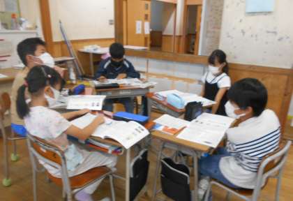 2枚目:社会科の調べ活動をグループの話し合いベースで行いました。全体の話し合いでは意見を話せなくても、グループ活動では活発に発言できます。