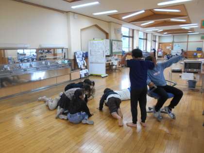 ワークスペースで男女分け隔てなく楽しそうに遊んでいる様子が見られました。遊びは「大根抜き」という名前のようです。