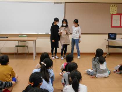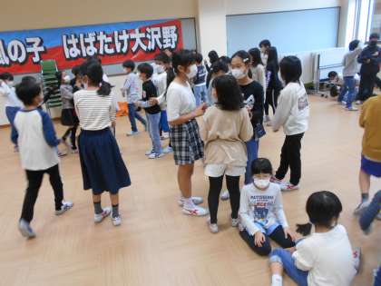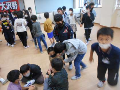 今日は1組が、4年生全員が楽しめるように企画した学年集会を行いました。3つのゲームが用意されており、初めに「仲間集めゲーム」を行いました。お題に対して、好きなものが同じ人同士で集まるゲームです。「花」「色」「1〜9」のそれぞれのお題で仲間を集めました。