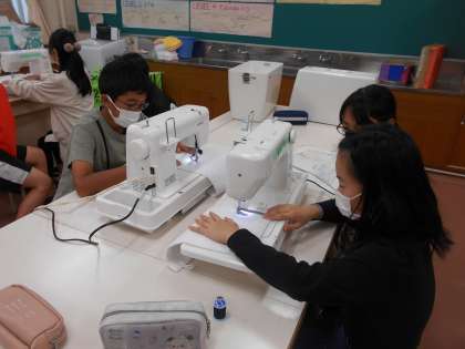10月6日(木)5年生 家庭科 「ミシンに挑戦!」 公開日 2022/10/07 更新日 2022/10/07 5年生 初めてミシンを使いました。 自動で動くミシンに初めは怖いと感じていた児童も、授業が終わる頃には慣れ、速いスピードで使っていました。 今回はからぬいでしたが、次回は自分のエプロンを作ります。