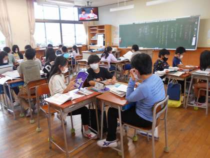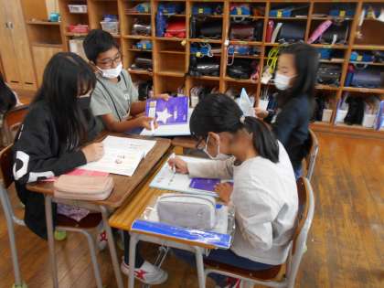 10月6日(木) 5年生 国語科「よりよい学校学校生活のために」 公開日 2022/10/07 更新日 2022/10/07 5年生 「残食0」を目指し、グループで話し合いをしました。 様々な意見が出て、白熱していました。 話し合いの末出た意見を、いざ給食の時に実践。 結果は・・・きれいに完食しました! これからも残食0を継続していきます。