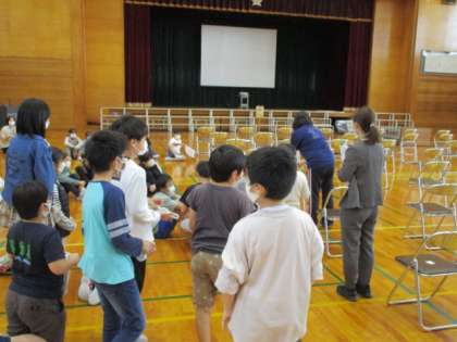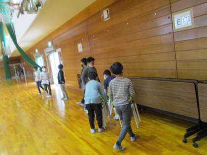 午後から行われる就学児検診のために、5年生が会場の準備を手伝いました。来年度入る新一年生のために、はりきっていました!