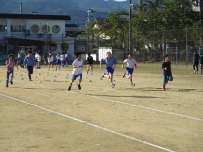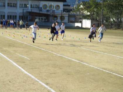10月の50m走の記録を測りました。3クラスで競い合ったので、いつもより結果が期待されます!