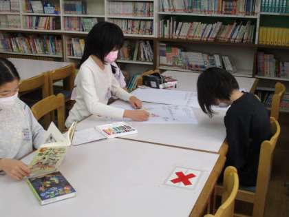 図書室に行くと、自分から進んで委員会の仕事を進めている5年生の姿がありました。こういう姿を見ると、高学年らしさを感じうれしくなります。見えないところでも頑張っている5年生です。