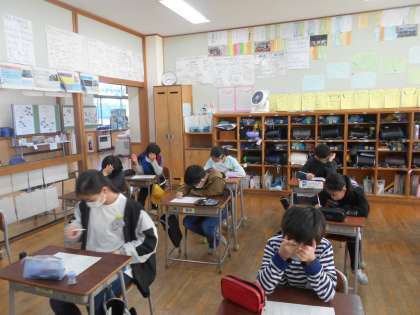 スタートタイムの「漢字ミニテスト」の様子です。