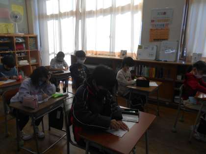 10問の漢字に全集中、顔を触っている子供、目をつぶっている子供は漢字を思い出そうと頭の中で会議をしているのでしょうか。がんばっている姿がほほえましいです。