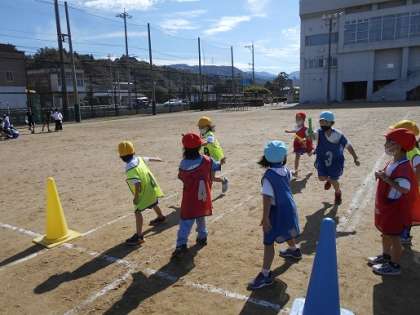 来週のリレー大会に向けて練習をしています。今日は3クラスで練習したので、意気込みを感じました。バトンパスも上手になっていますよ。