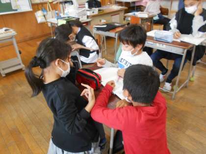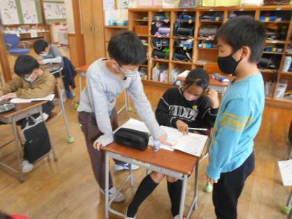 算数の様子です。今日は「分配法則」の学習です。式に表された意味を一人で考えたり、自分の考えを友達に伝えたりしていました。今まで筆算しなければできなかった問題も、この法則を用いて簡単に計算できることを発見し「おお!」と子供たちは感じていたようです。